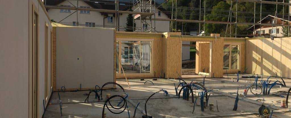Das bedeutet, dass neben dem Treppenhaus und dem Untergeschoss die ganze Konstruktion in Holz ist.